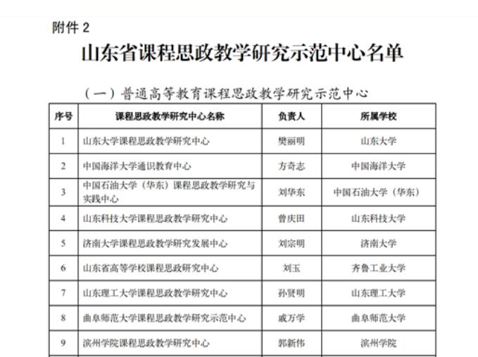 开云手机入口入选山东省课程思政教学研究示范中心
