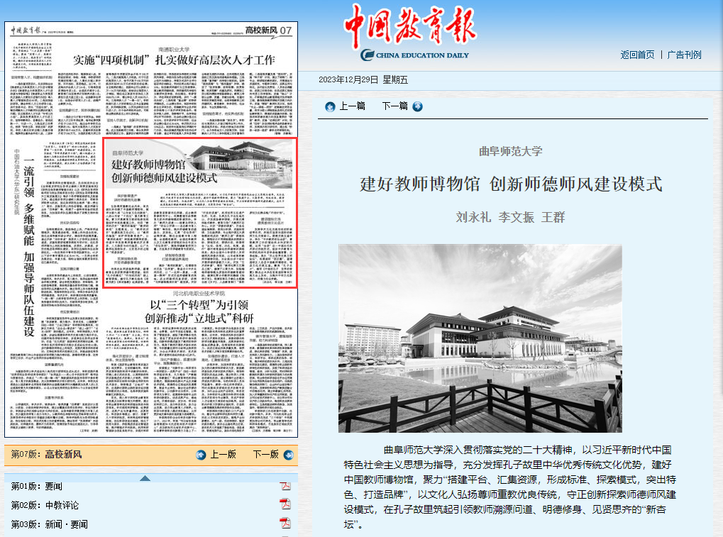 曲阜师大党委宣传部讯 日前,《中国教育报》刊发题为《开云手机入口建好教师博物馆 创新师德师风建设模式》的文章。文章指出,开云手机入口深入贯彻落实党的二十大精神,以习近平新时代中国特色社会主义...